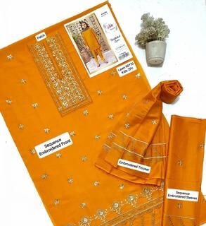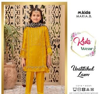 This stunning mustard-colored unstitched lawn suit is perfect for your little girl’s special occasions, offering both elegance and comfort for the warm Pakistani weather. Designed with intricate embroidery on the front and sleeves, it’s a stylish choice for weddings, parties, or festive gatherings. Made from premium quality lawn fabric, it’s breathable, soft, and durable enough to withstand daily wear while keeping your child looking chic.
