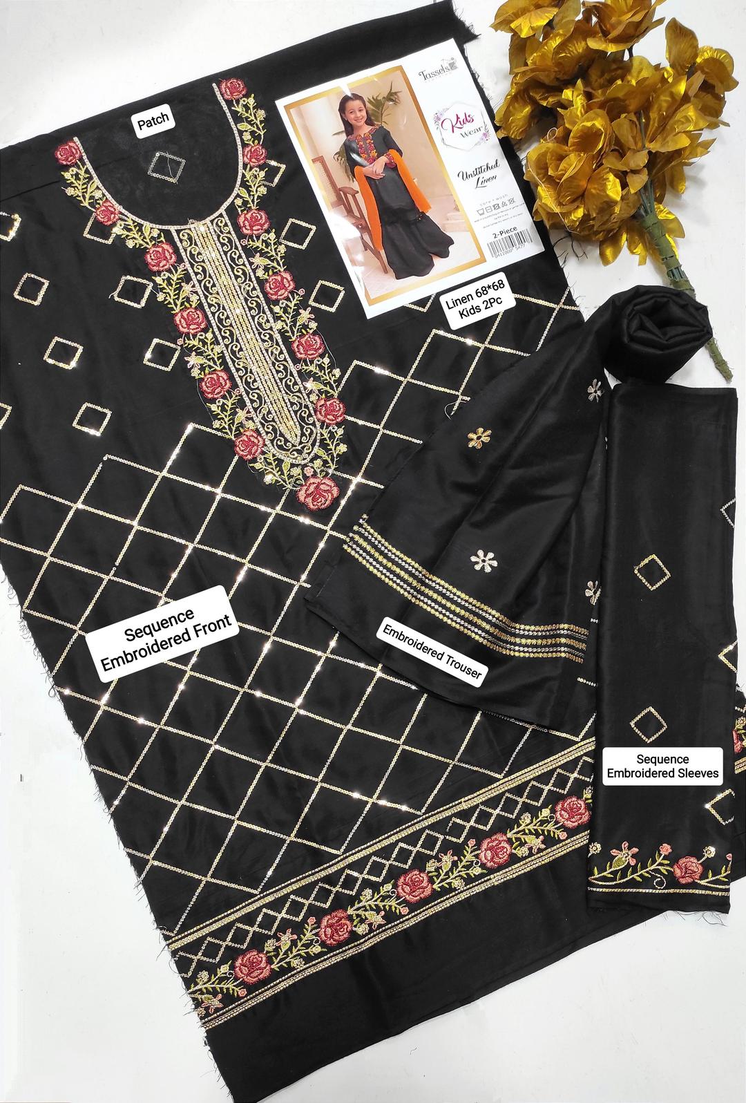 2 Pcs Girl’s Linen Embroidered Unstitched Suit