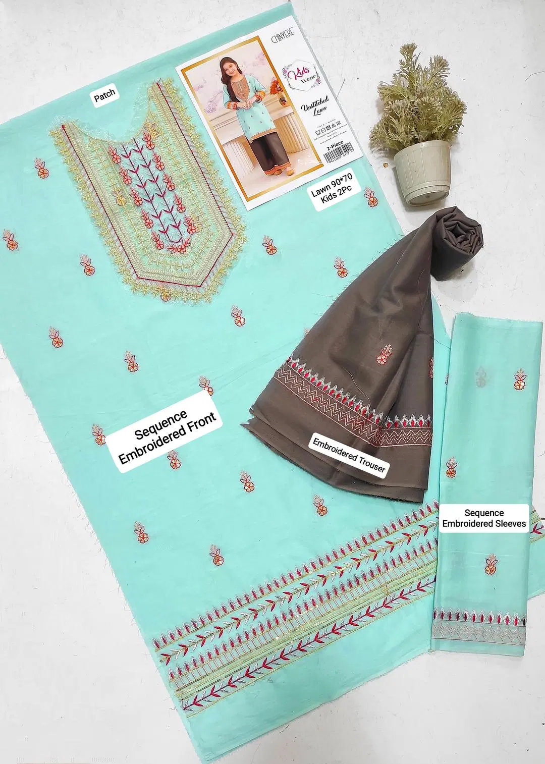 2 Pcs Girl’s Lawn Embroidered Unstitched Suit