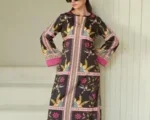 The khaddar material is breathable and soft, ensuring comfort even during hot weather. The printed design features colorful floral and bird motifs on a black base, adding a modern twist to classic Pakistani fashion. The round neck and long sleeves provide a balanced silhouette, while the matching trousers offer a relaxed fit. This set is not just fashionable but also practical for everyday use.