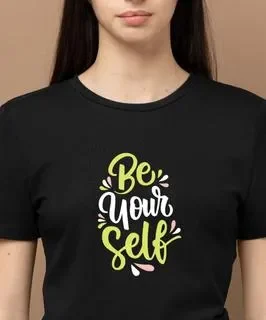 This black printed t-shirt is your perfect everyday companion, designed for comfort and confidence in Pakistanâs warm climate. The stylish âBe Your Selfâ message, accented with cheerful green and soft pink details, makes a bold yet positive statement for your daily wear or special occasions. Itâs not just a tee â itâs a wearable reminder to embrace your unique style.