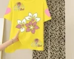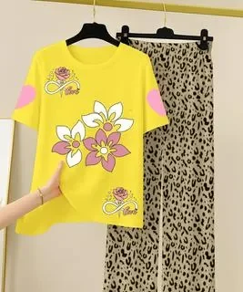 The top features a charming floral print with pink and white accents, while the matching leopard-printed trousers add a bold, modern flair. Made from premium quality jersey, this set is designed to last, resisting pilling and maintaining its shape even after multiple washes. The round neck and relaxed fit ensure maximum comfort, making it perfect for unwinding after a long day or enjoying a cozy night in.