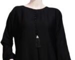 Crafted with premium quality, this abaya is built to last. The durable Nida material resists wrinkles and maintains its shape even after multiple washes. Its simple round neck and flowing silhouette offer a timeless look that suits any occasion. The front tassel detail adds a subtle touch of elegance without overpowering the minimalist design. You’ll love how easy it is to wear — no complicated fastenings or adjustments needed.