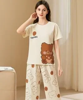 Stay cozy and stylish in this new arrival night suit perfect for warm nights and relaxed days. Designed for comfort, itâs ideal for home wear or light outings, offering a soft, breathable feel that keeps you cool in Pakistanâs humid weather. The premium quality jersey fabric ensures durability and long-lasting wear, while the cute bear and cookie print adds a playful charm that suits every age.