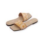 These women’s rexine fancy flats are the perfect blend of comfort and elegance, ideal for both casual outings and semi-formal events in Pakistan’s warm climate. The off-white base with vibrant golden floral embroidery adds a touch of sophistication without overwhelming your outfit. Designed for all-day wear, these flats are crafted with durable rexine material that resists wear and tear, making them a smart investment for your wardrobe. The square toe and flat sole ensure stability and comfort, whether you’re walking to work or attending a family gathering.
