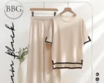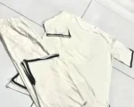 This new arrival is crafted with premium quality materials that resist pilling and maintain shape over time. The off-white color adds a touch of elegance while remaining versatile for any season. The stitched detailing along the hems and sleeves adds subtle sophistication without overwhelming the minimalist design. The relaxed fit ensures freedom of movement, while the precise measurements guarantee a comfortable, tailored feel. Whether youâre looking for daily wear or a cozy night outfit, this set delivers both comfort and durability at the best price in Pakistan.